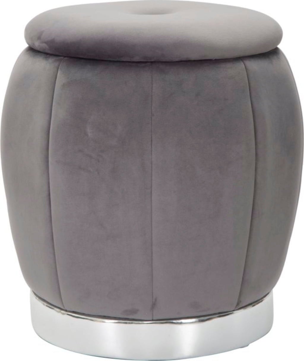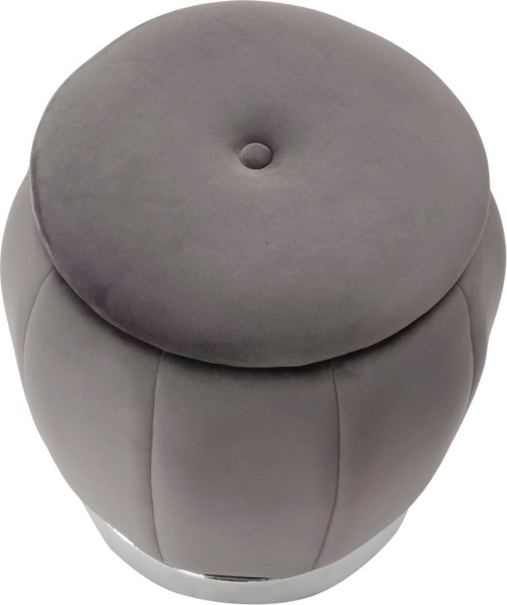 Aggiungi un accento glamour al tuo soggiorno o alla camera da letto con questo elegante pouf, ispirato al fascino delle lussuose cabine armadio delle grandi dive di Hollywood. È imbottito e rivestito in morbido velluto grigio, che regala una piacevole sensazione di lusso al tatto.