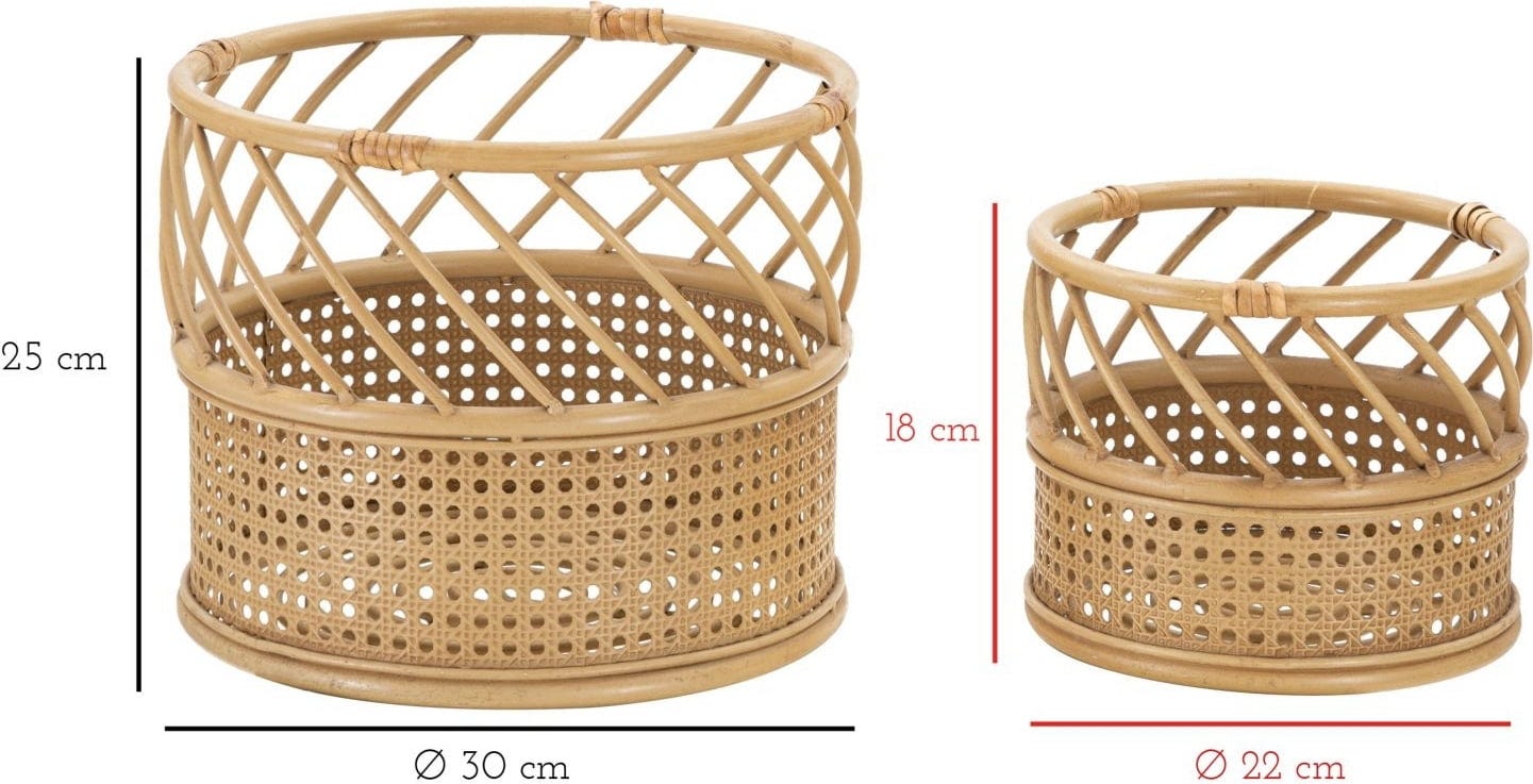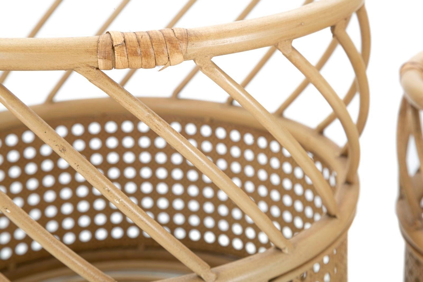 Il dettaglio più distintivo è la lavorazione raffinata nella parte inferiore, che richiama con stile il classico intreccio “paglia di Vienna”. La parte superiore è completata da un motivo arioso a rombi, che dona al set un look leggero e contemporaneo. In coppia o separati, il duo Panama porta in casa calore naturale e un tocco decorativo ricercato.