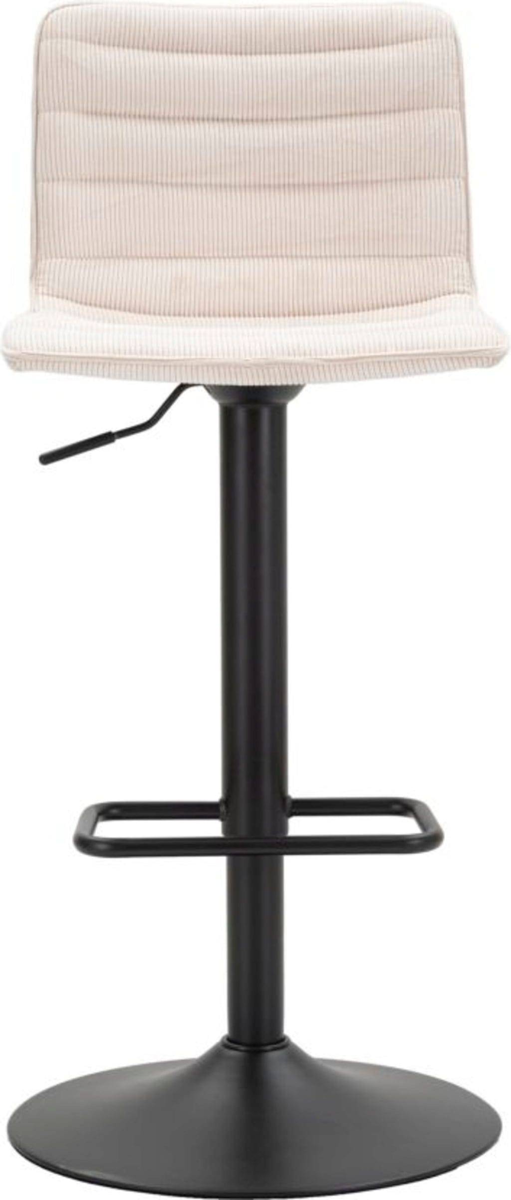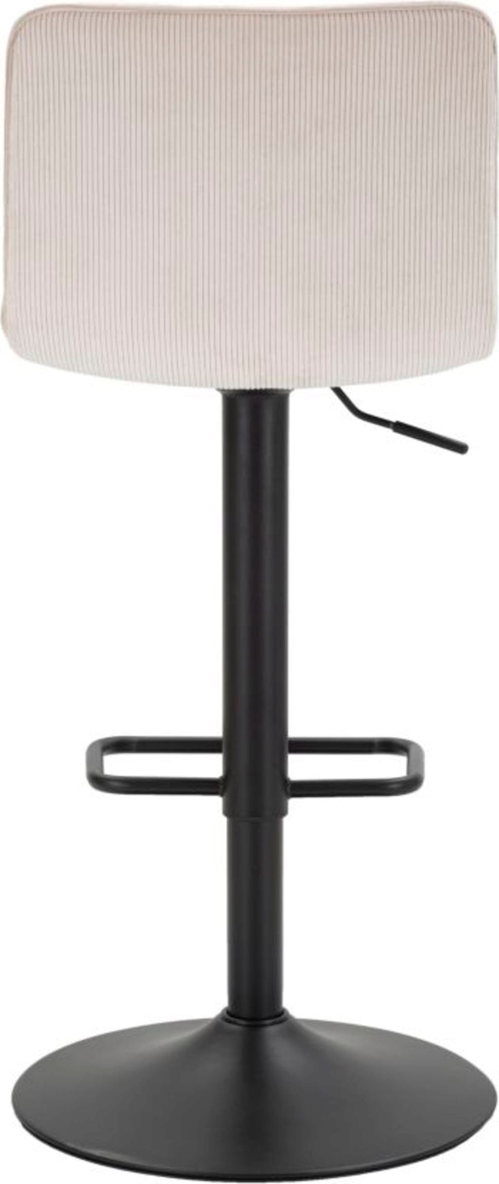 Il rivestimento in tessuto strutturato in un elegante bianco dona luminosità e freschezza all'ambiente, mentre la solida struttura in metallo nero garantisce stabilità e durata nel tempo. Grazie all'altezza regolabile e al pratico poggiapiedi circolare, si adattano con facilità a diverse altezze del bancone. Ideali per la colazione o per un drink serale, uniscono charme vintage e comfort contemporaneo.