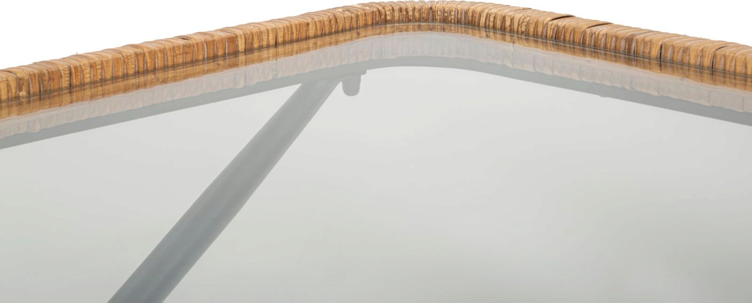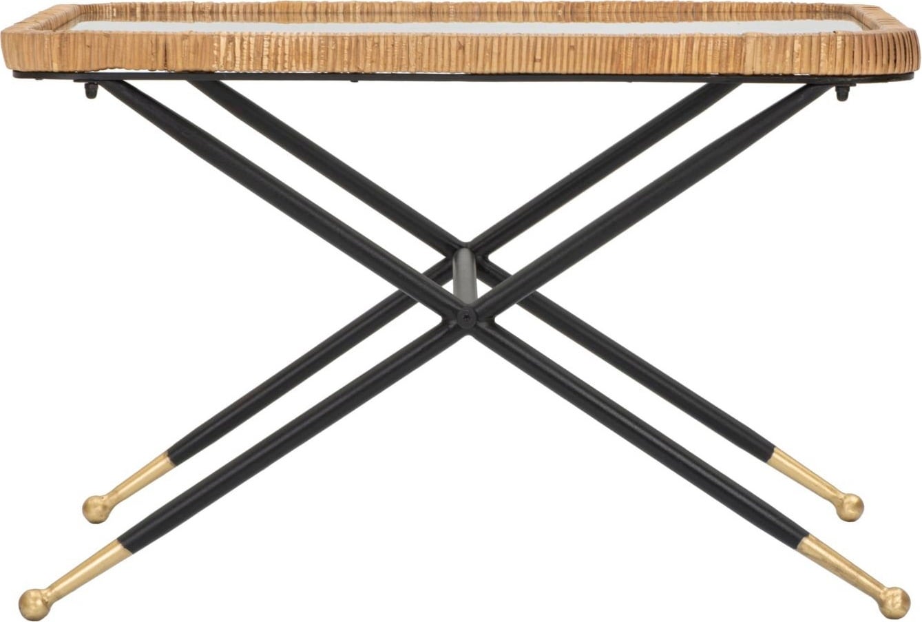 Dona al tuo soggiorno un upgrade di stile semplice ma d’effetto con questo tavolino da caffè rettangolare. Unisce la trasparenza essenziale del piano in vetro alla calda texture naturale dell’intreccio in rattan che lo incornicia con eleganza. La solida struttura in metallo nero con gambe a X garantisce stabilità e crea un contrasto moderno.