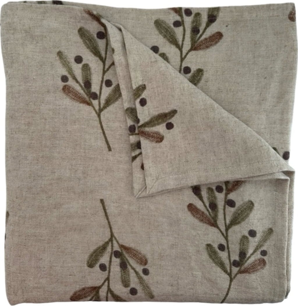 La tovaglia "Vischio" aggiunge un tocco festoso e naturale alla tua tavola da pranzo. Realizzata in misto cotone e lino, è piacevolmente leggera, facile da pulire e lavabile a 30 gradi. Il motivo stampato a forma di vischio completa perfettamente il design.