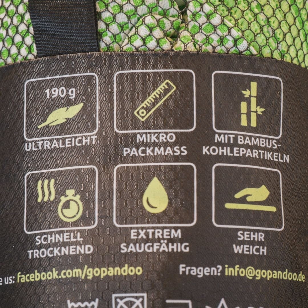 Pandoo Asciugamano da Viaggio in Fibra di Carbone Attivo di Bambù, 80 x 40 cm, Verde