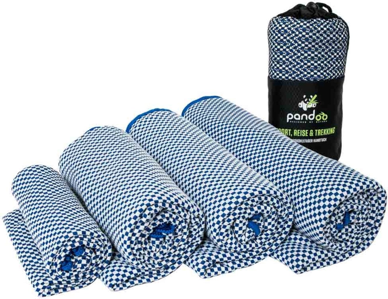 Pandoo Asciugamano da Viaggio in Fibra di Carbone Attivo di Bambù, 160 x 80 cm, Blu
