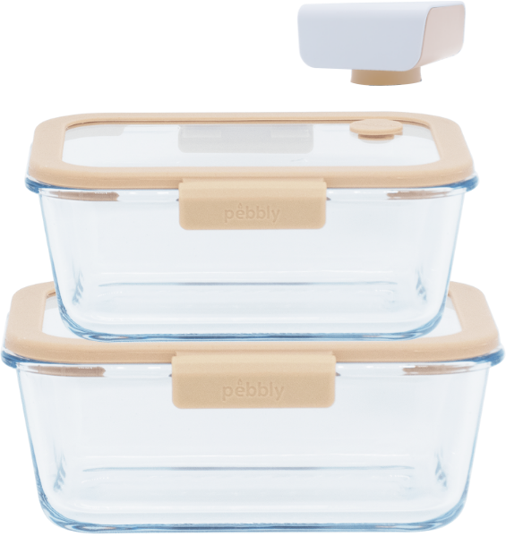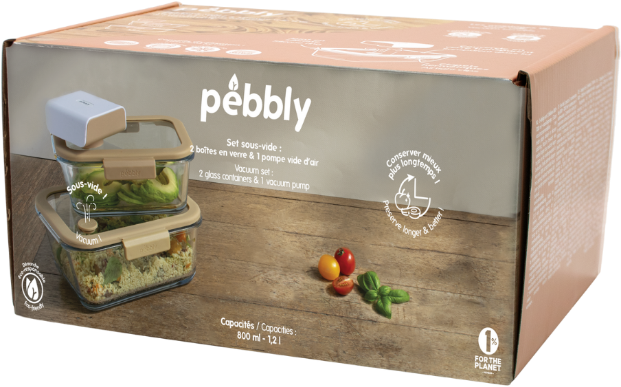 La pompa elettrica per sottovuoto è particolarmente pratica, in quanto sigilla i contenitori in pochi secondi. I contenitori in vetro sono versatili e adatti alla conservazione, al riscaldamento diretto o al congelamento: perfetti per cucine moderne e organizzate.