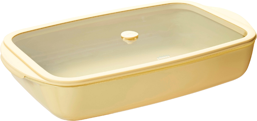 Pebbly Teglia Rettangolare in Vetro con Coperchio in Vetro e Silicone, 3,6 L, Vaniglia