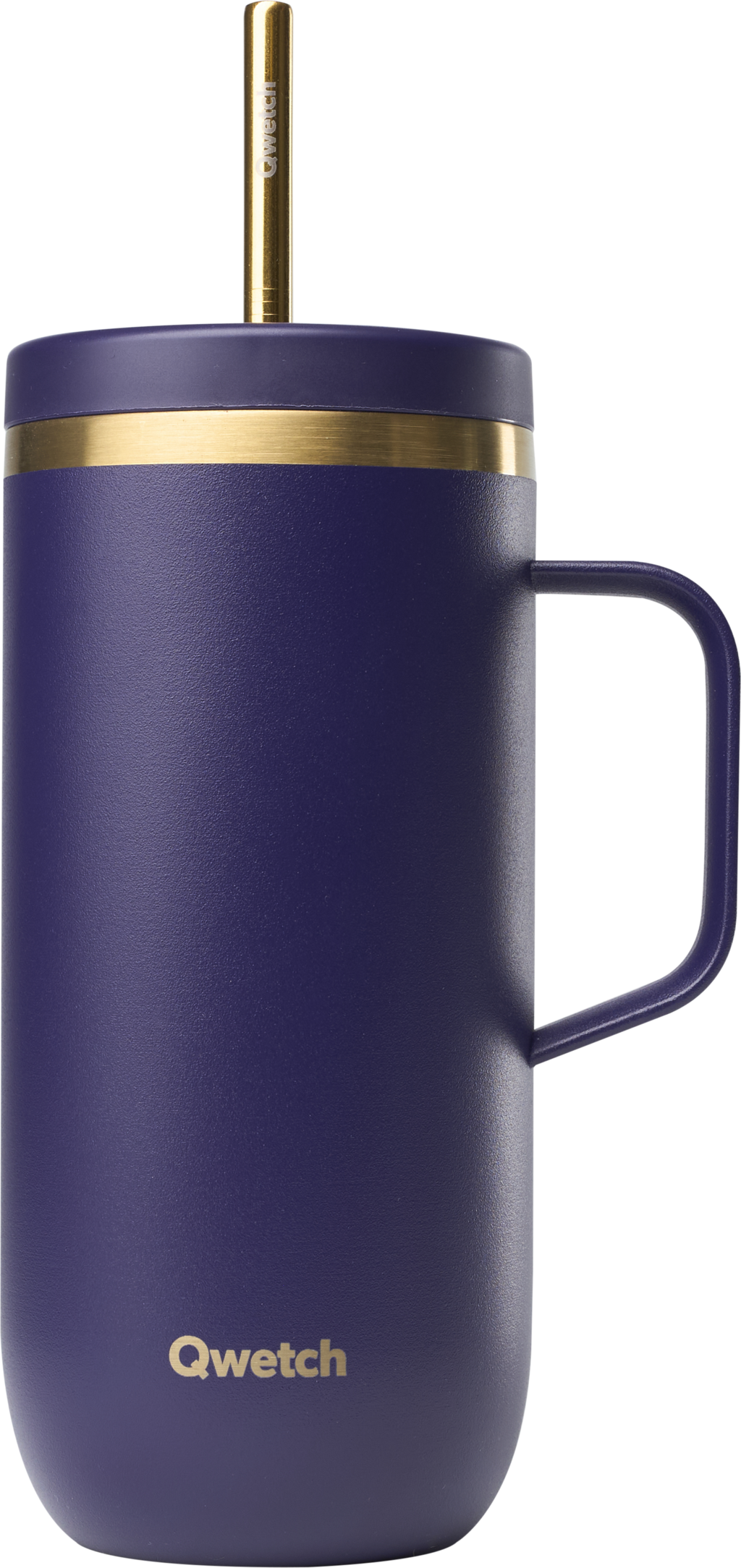 Qwetch Cold Cup con Manico - 600 ml, Viola scuro e oro