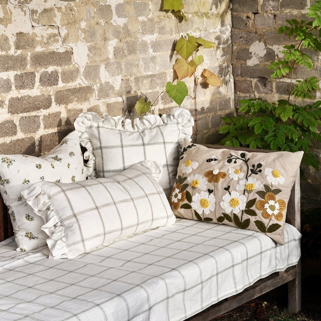 Questa federa floreale è realizzata in cotone e presenta delicati fiori ricamati. La cerniera rimane nascosta nella parte inferiore.