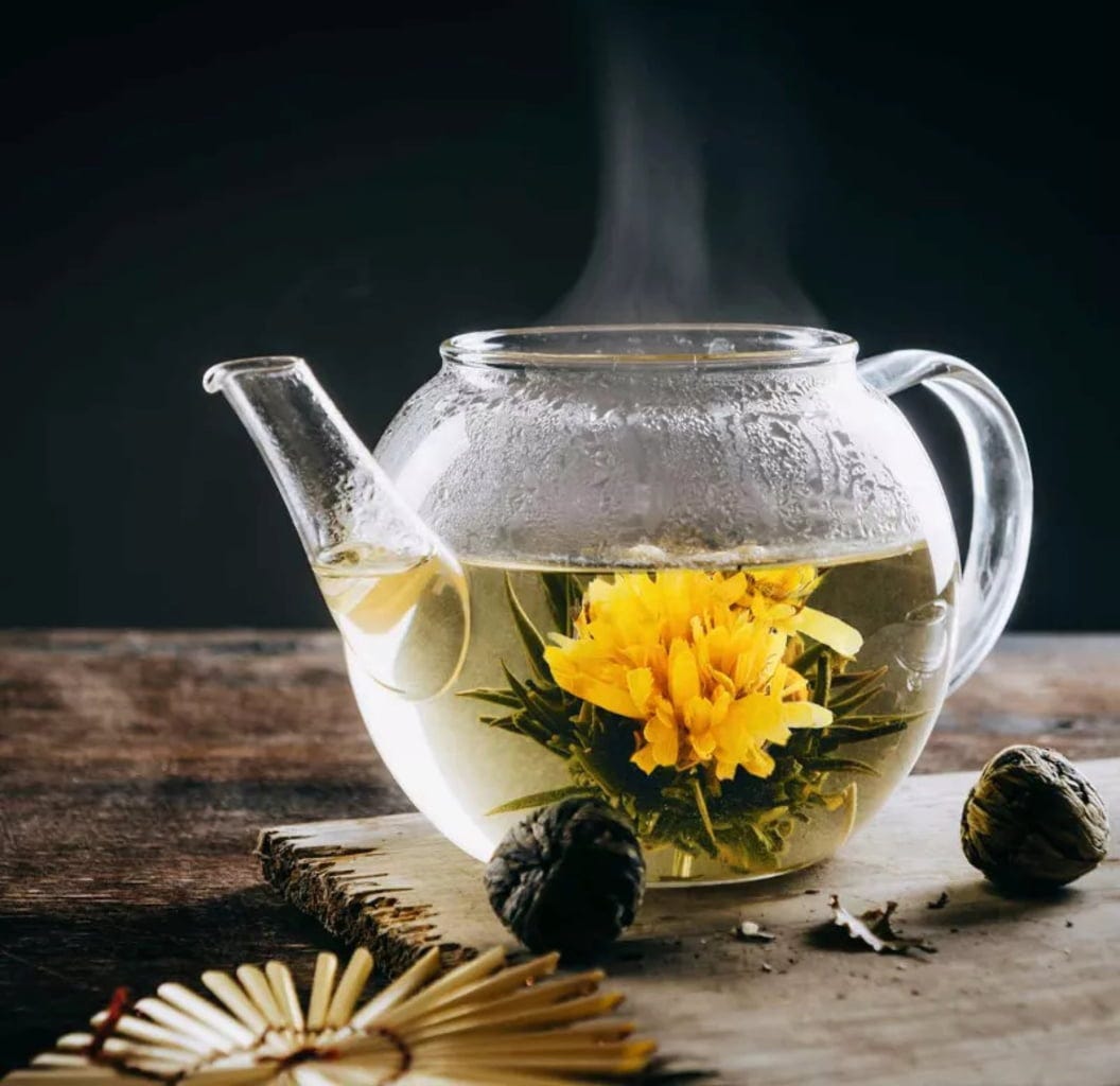 tè bianco, tè verde, fiori