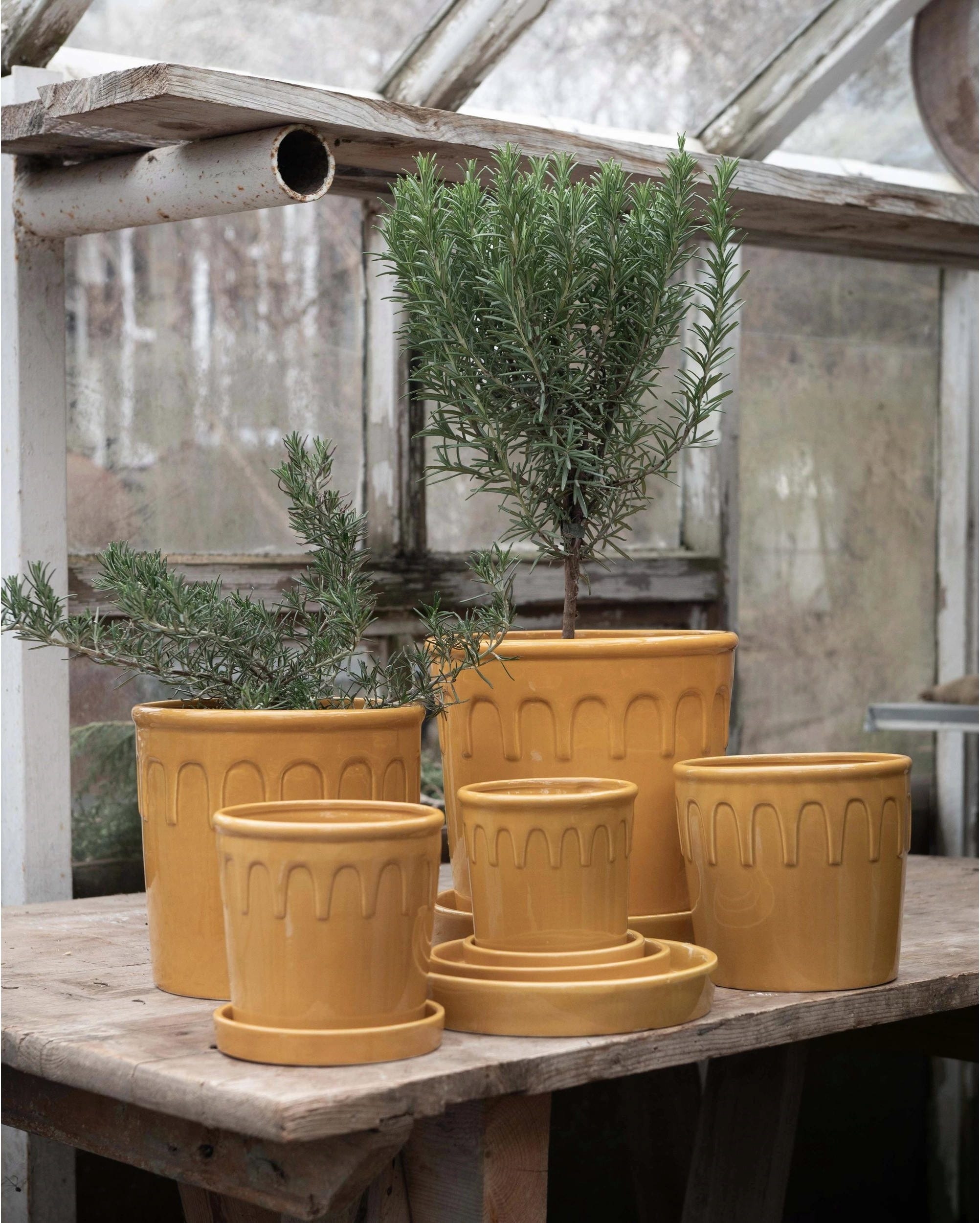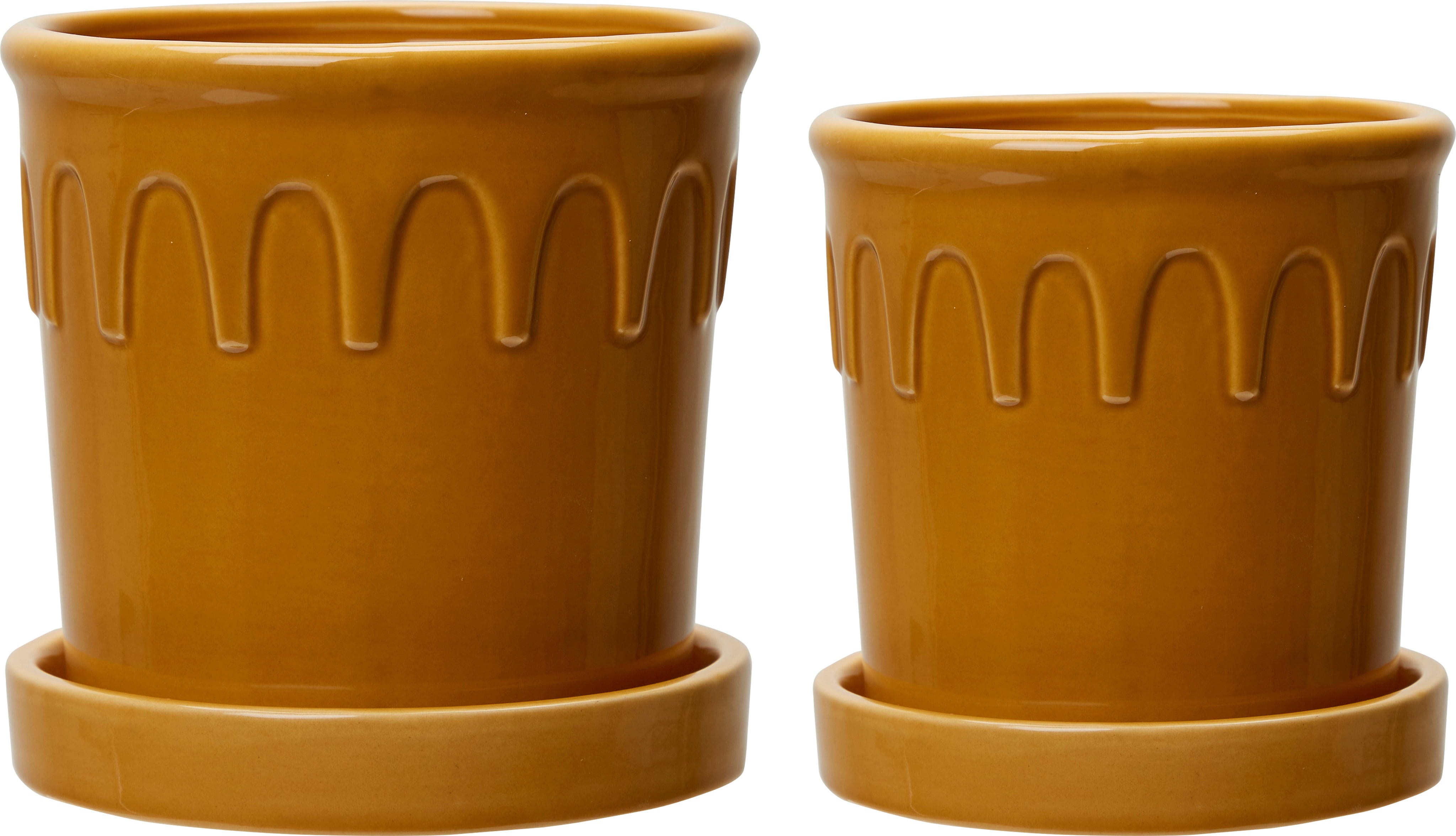 Con la loro attraente tonalità gialla, questi vasi valorizzano al meglio il verde delle tue piante preferite. Il design unisce elementi moderni a delicati richiami vintage, trasformandoli in eleganti punti di richiamo decorativo.