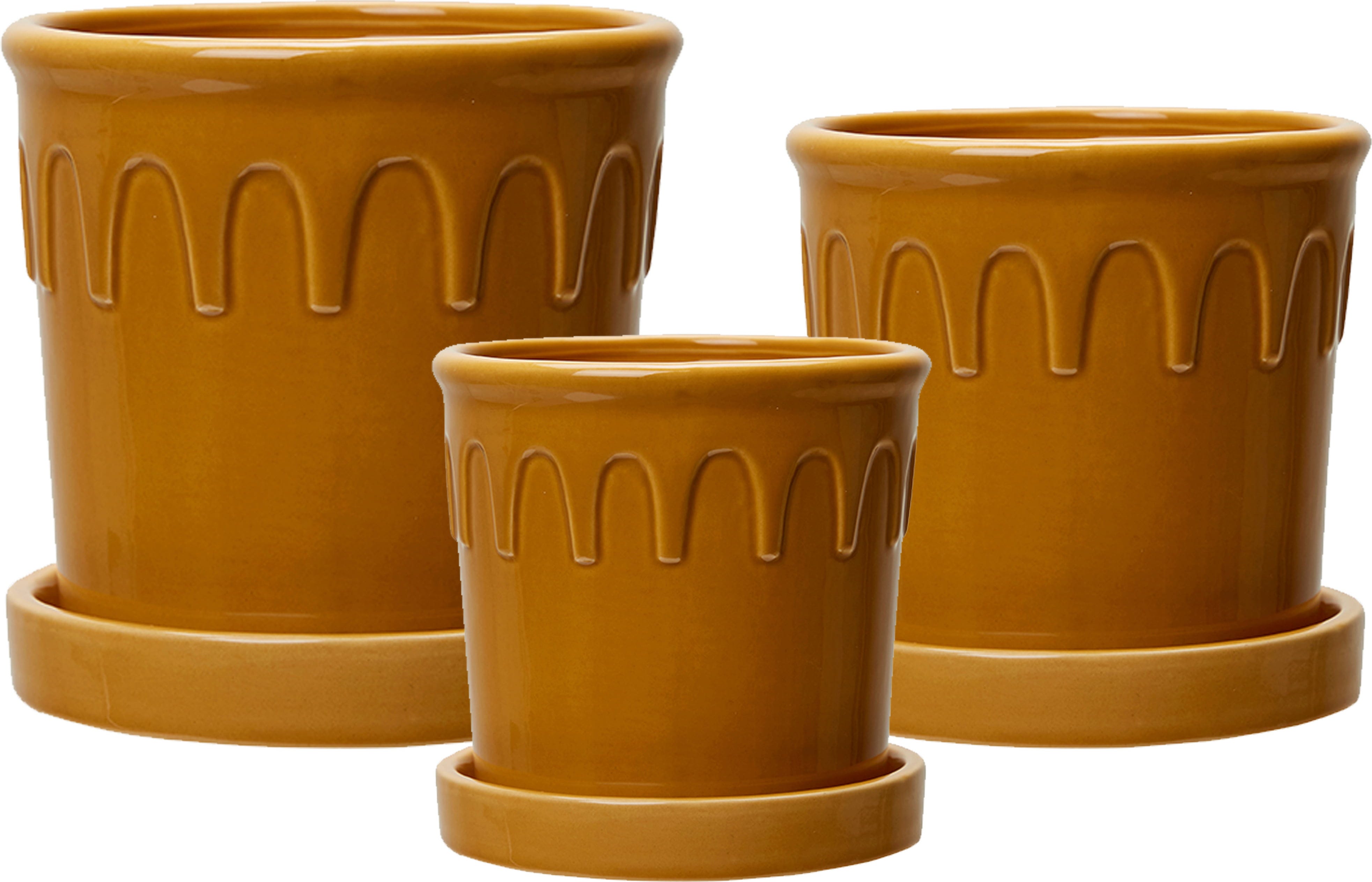 Con la loro attraente tonalità gialla, questi vasi valorizzano in modo particolare il verde delle piante di piccole dimensioni. Il design unisce elementi moderni a delicati richiami vintage, rendendoli raffinati elementi decorativi.