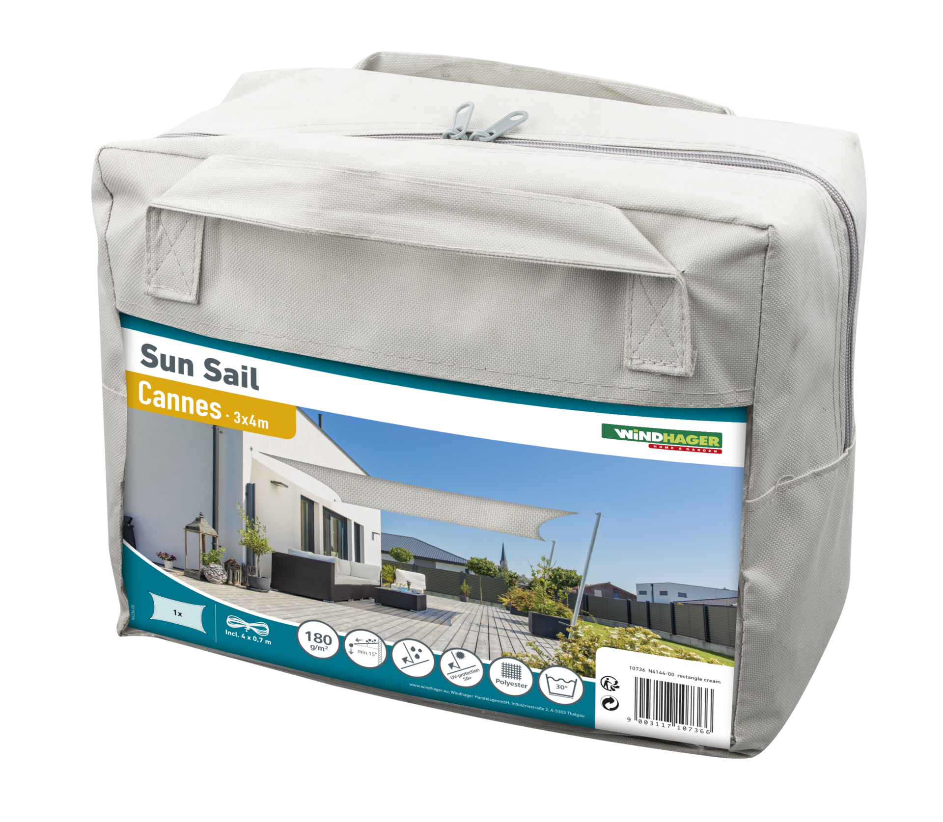 Windhager Tenda da Sole Rettangolare - SunSail CANNES, 3 x 4 m, grigio crema