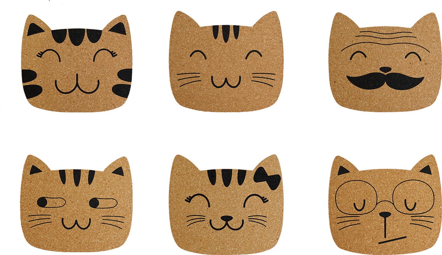 WINKEE Sottobicchieri in Sughero - Cat Family