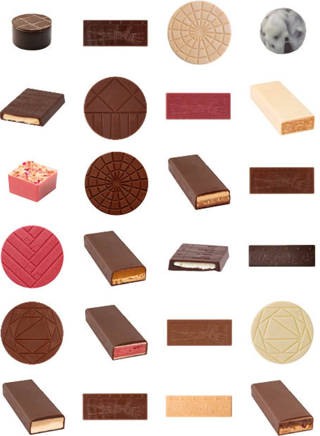 zucchero di canna[1], burro di cacao[1], pasta di cacao[1], mandorle[2], latte intero in polvere[2], marzapane[2] (mandorle[2], zucchero[2], sciroppo di zucchero invertito[2]), latte scremato in polvere[2], sciroppo di glucosio[2], nocciole[1], polvere di cocco[2] (pasta di cocco[2], latte di cocco[2], farina di cocco[2]), latte di riso in polvere[2] (riso[2], olio di semi di girasole[2], sale), burro[2], latte in polvere caramellato[2] (latte scremato in polvere[2], zucchero[2]), zucchero di datteri[1], prugne essiccate[2], crisp di caramello al miele[2] (zucchero[2], sciroppo di glucosio[2], burro[2], miele[2]), datteri[2], siero dolce in polvere[2], cocco grattugiato[1], zucchero di fiori di cocco[1], arachidi[2], amarene[2], panna montata[2], crisp di caramello[2] (zucchero[2], sciroppo di glucosio[2], burro[2]), zucchero di canna grezzo[1], fragole essiccate[2], noci del Brasile[2], concentrato di visciole[2], mirtilli rossi essiccati[2], amarene essiccate[2], latte intero[2], bevanda di riso[2] (acqua, riso[2], olio di semi di girasole[2], sale marino), latte di cocco[2] (noce di cocco[2], acqua, gomma di guar (E412)[3]), succo di ribes concentrato[2], lecitina di soia (E322)[4], farina di segale[2], limone in polvere[2] (succo di limone concentrato[2], amido di mais[2], zucchero[2]), olio di mandorle[2], sciroppo di datteri[2], ribes essiccato[2], lamponi[2], salgemma, uova intere[2], baccello di vaniglia in polvere[2], farina di semi di carrube[3], miele[2], spezie per pan di zenzero[2], succo di limone concentrato[2], cannella[1], olio di semi di girasole[2], olio di arancio[2], concentrato di succo d'arancia[2], bicarbonato di sodio[5], lecitina di girasole[4], petali di rosa[2], olio di mandorle amare[2], olio di menta piperita[2], olio di lavanda[2], Birds Eye Chili[2]